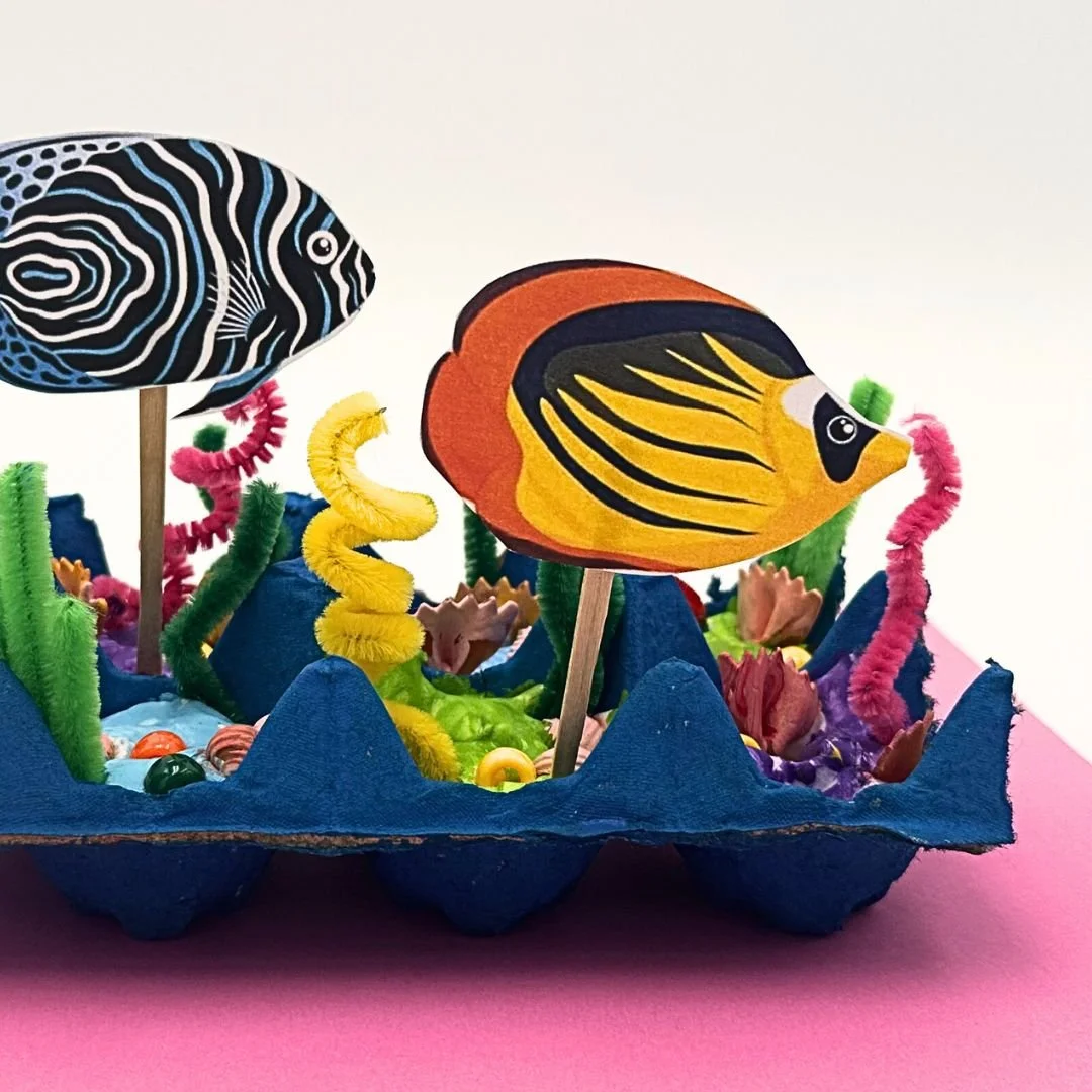 Dive into creativity in this fun, hands-on workshop inspired by vibrant coral reefs! Students will paint and assemble their own underwater scene using egg cartons, model magic, and colorful mixed media like pasta, shells, and beads. Each child will design their own ocean environment and leave with a unique 3D artwork to take home.